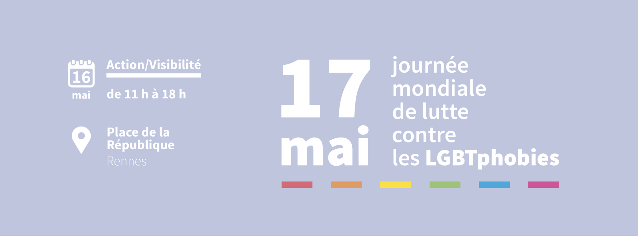 La Journée mondiale de lutte contre les LGBTphobies a lieu chaque année le 17 mai. Il s'agit d’une journée de sensibilisation, afin d'attirer l’attention du public, les élu·e·s, les médias ainsi que les leaders d'opinion sur les situations alarmantes rencontrées par les lesbiennes, gays, bies, trans et tous ceux qui ne se conforment pas à la majorité des normes sexuelles ou de genre.