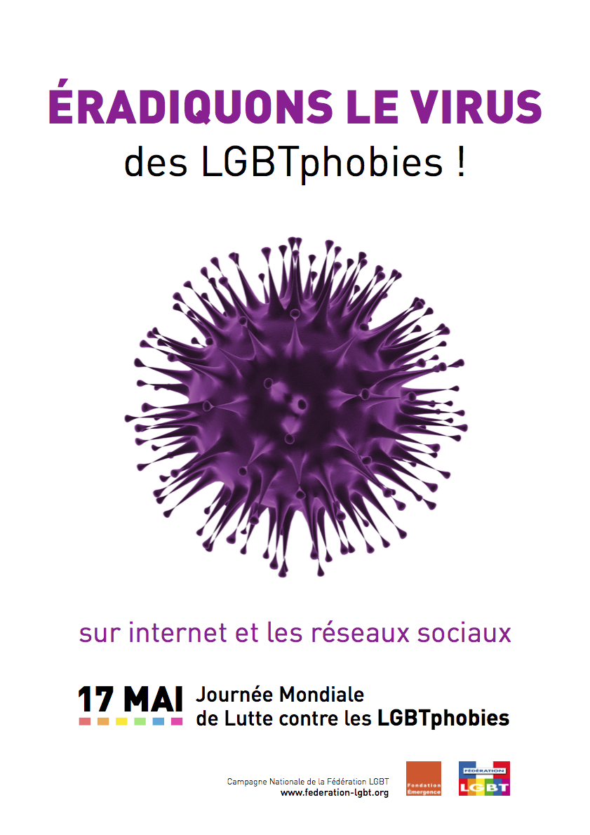 La campagne “éradiquons le virus des LGBT-phobies” est reprise de nos ami·e·s québecois·es de la , que nous remercions. La Fédération LGBT s’attaque à la nouvelle forme des LGBT-phobies qui ne connaît plus de frontières, ni de limites. Une agression, des injures, une menace, il est important de le signaler ! Le silence tue et les LGBTphobies progressent. Faisons éradiquer ce virus !